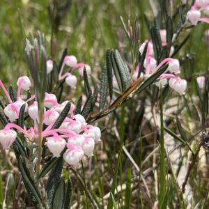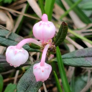 少しだけ高山植物❼ ヒメシャクナゲ(姫石楠花) *ツツジ科ヒメシャクナゲ属 花期は6〜7月 北海道〜中部地方以北の高山.亜高山の湿原に自生する常緑小低木! 高さは10〜30cm 葉は線形〜楕円形で先が尖り縁が裏側に巻き込む! 花は淡いピンクの壺形で下向きに2-6個ほどを付ける! 名前は 葉が石楠花に似て、小さい事から! 小さいながら木本です! 6月30日撮影