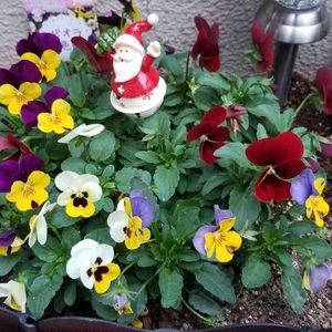 おはようございます ハルディンさんの『ビオラ4色ミックス』さん 10月12日(火)にお迎えしました ビオラとチューリップのダブルデッカー植えの為お迎えしました 12~13号鉢に植えたにも関わらず 大きくなり過ぎたので (たぶん横に広がるタイプ❓) 急遽植え替えました 現在株幅28cm 今はハンギングバスケットの下にある 『やんちゃって花壇』にてお世話しておりますよ‼️