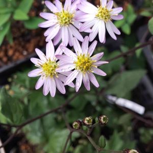 ✨清澄白山菊✨ 先日山野草のお店で出会ってしまいました。 黒軸で薄むらさきの可愛いお花に一目惚れしてしまって連れて帰りました。