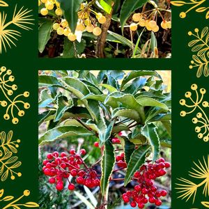 紅白の万両が,我が家の庭やご近所の庭でモリモリです 縁起が良いので,抜かずにお正月の生け花に使います 南天,千両、万両、ピラカンサなど実がなる木が多い‼️