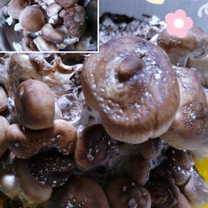 今日の椎茸…🪵🍄🍄🍄🍂 3つ、収穫できました*∗*∗* 🧺🍄🧺🍄🧺🍄🧺