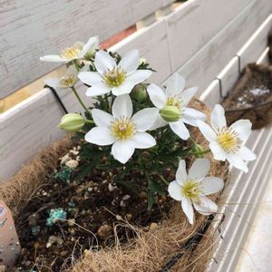3月20日に苗が届いて植え付けたクレマチスカートマニージョー。 去年一目惚れして、今年絶対育てたいと思っていたひとつ😍 3号ポットに入っていて小さくて大丈夫かなあと心配でしたが、お花付きがすごくて驚き🙄🙄