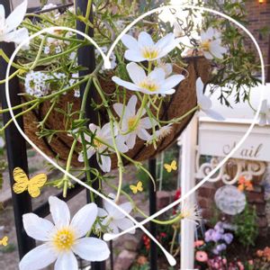 最近の庭 クレマチスカートマニージョーとスーパーアリッサムのハンギング この頃からだんだんと花が終わりになって来て今は3分の1切り戻しました。