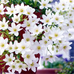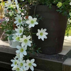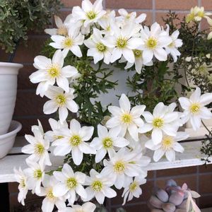 このクレマチスお迎えしました 名前が分かりません 前にHCで見かけて写真を撮っていた物がお値打ちになっていたのでお迎えしてきました。 白くて小さいお花が可愛いです💗 *☼*―――――*☼*――――― クレマチスカートマニージョーと教えて頂きました ありがとうございます(❁ᴗ͈ˬᴗ͈))