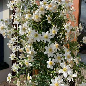 おはようございます😊 3度目の登場〜😆✨🌿 クレマチス・カートマニージョー✨💠 こぼれ落ちるように咲き乱れています〜🌿💠🎶 今朝はいいお天気で、陽射しのさし加減をみては、カメラを持ってベランダへ何度出入りしたことか〜🐕もつられて出たり入ったり😅💦 日向ぼっこ大好きなんです〜💕✨💤