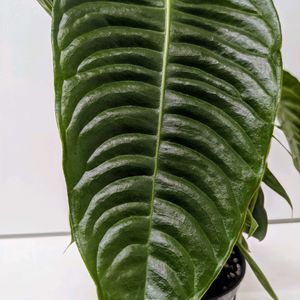 アンスリウム原種クラリネルビウム😊大好きです〜😊4つ目です〜😊このまん丸のハート❤️形の肉厚の葉っぱが最高です〜😊育てやすく丈夫です〜😊根っこも太い😊 アンスリウム・クラリネルビウムは、アンスリウムという大きな属の中の**「原種(種小名: clarinervium)」**の一つです。 アンスリウムの仲間は世界に600種以上もあるとされ、大きく分けると、花(仏炎苞)を楽しむ「一般園芸種」と、葉の美しさを楽しむ「原種系アンスリウム」に分けられます。 クラリネルビウムは後者の**「葉の美しさを楽しむ原種系アンスリウム」**の代表格です。 🍃 葉を楽しむ原種系アンスリウムの主な仲間 クラリネルビウムと同じように、葉のユニークな形や葉脈の美しさが魅力の原種系アンスリウムには、以下のような種類があります。 1. ハート型の葉と白い葉脈を持つ種類 クラリネルビウムと同様に、ベルベットのような質感の濃い緑色の葉に、白やシルバーのくっきりとした葉脈が入る種類です。 • アンスリウム・クリスタリナム (A.\ crystallinum) • 葉の形はクラリネルビウムに似たハート型で、白くはっきりとした葉脈が特徴です。 • 特に葉が丸みを帯びた**「ドラヤキ」**と呼ばれる品種も人気があります。 • 和名では「シロシマウチワ」とも呼ばれます。 2. ユニークな形の葉を持つ種類 ハート型とは異なる、特徴的な形や質感を持つ種類です。 • アンスリウム・フォルゲッティ (A.\ forgetii) • 葉の形が**小ぶりな涙型(または円形に近い)**で、付け根の切れ込みがない、ユニークな形をしています。 • 濃い緑色の葉にシルバーの葉脈が入り、成長するにつれて葉脈のシルバーが濃くなるのが特徴です。 • アンスリウム・ワロクアーナム (A.\ warocqueanum) • 細長い縦長の葉を持つ、非常にエレガントな種類です。 • 葉脈はあまり目立ちませんが、葉の表面全体がベルベットのような質感と光沢を持ちます。 • アンスリウム・ビレナオルム (A.\ veitchii) • 非常に大きく縦長の葉を持ち、成熟すると30cm以上になる大型種です。 • 葉の表面には光沢があり、波打つような凹凸(アコーディオンのような見た目)が特徴的です。 3. その他 • アンスリウム・フーケリー (A.\ hookeri):団扇のような丸い葉をロゼット状に広げるタイプで、バリエガータ(斑入り)種も人気です。 クラリネルビウムは、これらの葉を楽しむ原種の中でも、比較的小型で育てやすく、葉脈のコントラストが非常に美しいことから人気が高く、**「ベルベットアンスリウム」**の代表的な種として愛されています。