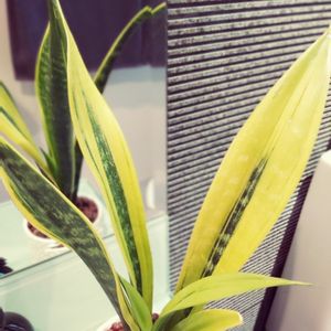 新芽が出てきたサンスベリア#3、 バスルームへ。