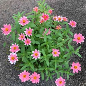 おはようございます。ジニア(一応寄せ植え)です。7/7以来の投稿です。 ワイヤープランツと黒竜も同居してますが、ジニア1株だけ、とびきり旺盛です😆
