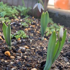 スノードロップ♡ 左下のミニミニな子も、ちゃんと蕾を付けながら大きくなってきてます😍 チューリップの芽も伸びてきました👍 倉庫のダリアの球根チェックもしましたが、こちらはまだ全く芽は無しでした。 1ヶ月後に再度確認します。