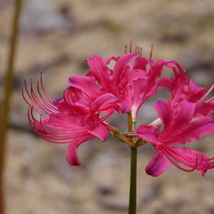 濃いピンクの彼岸花(リコリス)、紫がちょっと入っている。 ツケマみたいなシベが美しい。花びらの小さなウェーブが女の子らしい感じ。