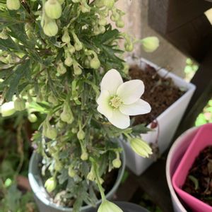 クレマチス カートマニージョ🤍 大好きなお花が咲きました♪ 待ったよー♪ この日を♡(*≧∀≦*)♪ 蕾が沢山♡ワクワク♪ これから楽しみです♪ 雨は午後からって言ってたのに。。 午前中はお花たちの植え替えできるかな♪って思ってたのに、、またできないよ😓またこの次ね。っていつやねん。お天気悪いの続くやん。。😂