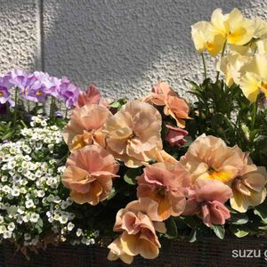 絵になるスミレの ミュール♡ フリンジパンジーの ミュシャ♡ 豪華に咲いてます。…が この中に、 金魚草もお住まいですが 見えてません😅 大丈夫かな?😶