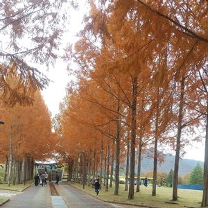 西脇市日本へそ公園 メタセコイアの並木を見て来ました🚗紅葉していて綺麗です😍😍😍新聞でも紹介されていたから、沢山の方が来られてました👪👫👱👴👵👶👧👨👩👾👽風が冷たくて😣写真だけ撮って😁さっさと帰って来ました🚗