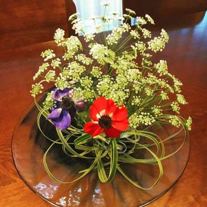 久々の投稿🌸 今日まで、スクールの作品展でした。 花嫁の一日💕のテーマで、カジュアルウィデングの担当でした。 テーブルのアレンジを造りました。 作品の一部です。