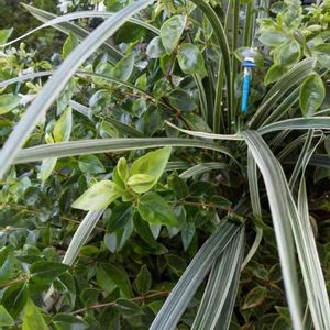 久々のアレンジ教室でしたが、コロナの影響で会場借りられず、花材だけ引き取り、🏠でテキスト見ながら作りました😢 デコール ~装飾~ ハランとドラセナで作った🎀にデンファレを沿わせて。