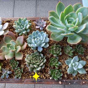 この子は、センペルビウムなのかな? なんか…ちょっと違う感じもする😓 葉っぱにツヤがあって、エケベリアっぽくも見えるけど まわりに、グルッと一周 子株がついてる感じは センペルビウムだよね… わかる方、教えて!!🙇