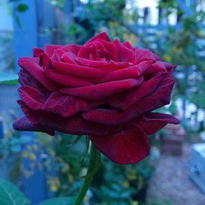 スマホで撮るとどうしても目で見ている色より明るくなってしまいますがブラックバカラが一輪😍 バラは今の時期黄色くなった葉を拾うのに大変😅 触ったらすぐ取れそうな葉を落ちる前に取るようにしていますが毎回手が傷だらけに~