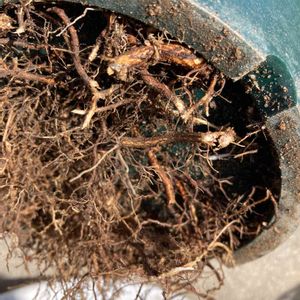 ブラックバカラ 動かなくなっていた鉢、根を切って底を見たらこんな事に。 そりゃ動かないわー😩 太い根が2本左右に伸びていました。 レタス位の大きさに根を整理してと書いてあったのでそのくらいまで小さくして同じ8号に植え直しました。 家の基礎に影響があったら困るから地植えはやめてほしいと言われたので😅 でも、こんなに根を張ってたらそりゃ元気だわーって思いました。 冬剪定した後もう一回植え替えるかも🙄