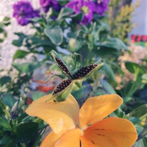 種♡ 我が家の顔になる玄関の樽鉢✧ スミレが咲き終わりかなと眺めていたら種を発見 ( *´꒳`* ) こぼれてしまう前に採取✧ また芽からも楽しめるかな~♪