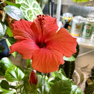今日のハイビスカス🌺ロングライフシリーズアドニス😊インドアハイビスカスサニーシティ🌺3つ同時に開花しそうです♪♪♪😊