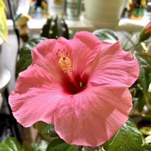 今日のハイビスカス🌺ロングライフシリーズアドニス😊フィロデンドロンセロームホープを配置換えして前面に持ってきました😊目玉オヤジ👀かわいい🩷❤️です〜