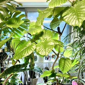 モーニングジャングル😊今日も1日良い日でありますように😊お気に入り😊アロカシアアティキュラータ😊葉っぱの模様が恐竜🦕🦖みたいです〜😊