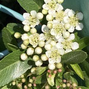 おはようございます😊 🏷️今日のお花💠ピラカンサ💠 ① ピラカンサの花 ②③④ ⑤ 💠ピラカンサの赤い実❤️ 5枚あります🌿 見てくださいね😊🎶💕︎