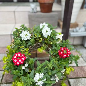バーベナでリースを作ってみました。リースを作るつもりで買ってきたのではなかったのですが帰宅してから、思いつき家にあるリーフと合わせてそれらしくはなったかな🌿 まずは冬のリースを崩してその苗も他に植え替えて🪴麻布も新しく張り替えて なかなかの作業でした💓