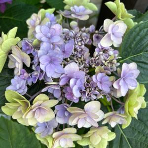 こんにちは😊 先程 外に出たら土砂降りの雨//☂// GSの今日のお花💠 アジサイ💠 に似合う天候です(^-^) ①ハート形の💙紫陽花です♡ 京都♡三室戸寺に♡型の紫陽花があることを知り一眼レフ持って出掛けて出会えた1枚です💙まだ📱のない時でした😅 ② 母の日に貰った我家の紫陽花💙 今年も咲いてくれました💙💞 ③ 🌿斑入りガクアジサイ(ご近所での1枚) ④ ガクの形が素敵な1枚💠 ⑤ アナベルアジサイ 5枚あります🌿 見てくださいね😊🎶💕︎