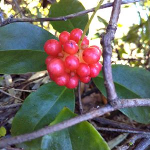 赤い実の 集合果。 「サネカズラ」の実 です😃