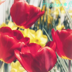 「チューリップ🌷と水仙」 仲よく咲いています💕
