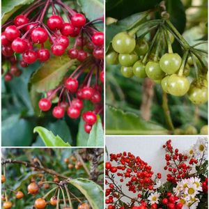 🔴マンリョウ 🟢シロミノマンリョウ(まだ青いけど) 🟤変な色のマンリョウ😅 🔴玄関に救済したナンテン 今年は実付きが良いみたい🤩