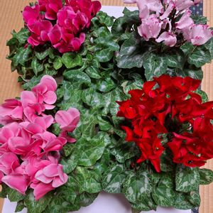 おはようございます☺️ 先日いつもの方からシクラメンを4鉢もいただきました😆✌️🙌👏👏👏 ①4色まとめて ちょっと雑になりまし た(笑) ②~⑤それぞれ😊 5枚見てくださいね~👋👋👋👋👋