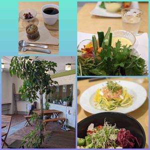 お友達とローフードの先生のカフェへ𓌉◯𓇋 ♡Ψ(*´▽`*)Ψ♡*✲゚*。✧•*¨*•.¸¸♪✧ 前菜🥗主菜🍝ψ(´ڡ`♡) "オイシ﹏ ♬*コーヒ)🍴デザート~~✨☕q(*´∀`*)コーヒタイム㊥ 愛知県名古屋市