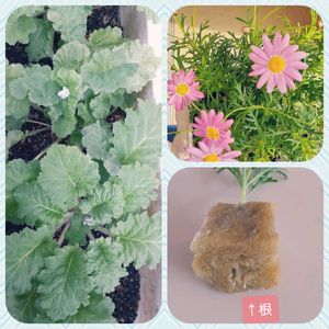 さくら草 蕾発見😃🎵 マーガレット ロックウールブロック?に挿し芽してみたら根っこがはみでてきたよ~☺️