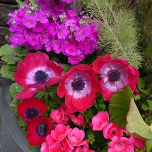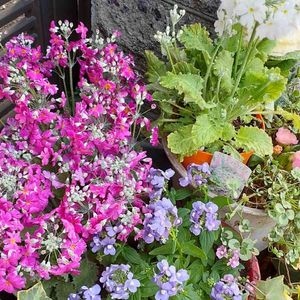 2022.3.6 晴れ⛅ [サクラソウ・ネメシア・アイビーヘデラ] 今日は、寒かったです。 サクラソウが、満開になり、 一気に春色になりました😃