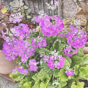 散歩途中に見つけたサクラソウの寄植えが綺麗でした。