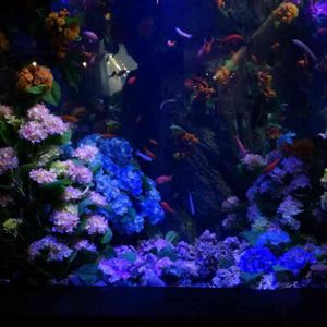 新江ノ島水族館にて‼️ 水槽の中に紫陽花と魚がコラボ