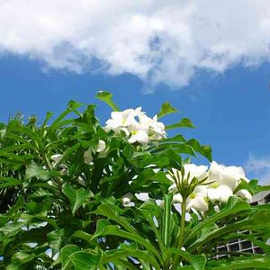 プルメリアかな? 夏だなーと感じる花だな〜。