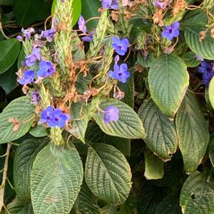 💙ルリハナガサ💜 漢字で書くと「瑠璃花笠」、トロピカルブルーセージ✨ともいいますよ💙 ✨ インド原産の 常緑低木で青紫色(瑠璃色)の美しい花が咲きます…💙💜🌿 冬の時期に開花して、珍しいお花かと思います、先日植物園にて見つけました 花言葉は、『可憐の極致』ですって💦💖 ✺◟(∗❛ัᴗ❛ั∗)◞✺