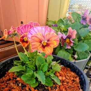 実家寄せ植え🌿✨ パンジー きもの ときめきビオラ ビリビリ