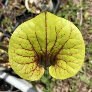 サラセニアの実生です。今年の2月播種で大きい物でこのくらい…(肥培はほぼしてません) この冬でどれだけ生き残るかな…? とりあえず寒くなるまでにもう一回り大きくなってね🌿