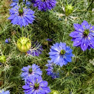 ご近所さんでニゲラが見頃になっていました💙 白いツボミから咲き始めは薄いブルー だんだんと咲き進むにつれてパープルへと色の変化が素敵です💜