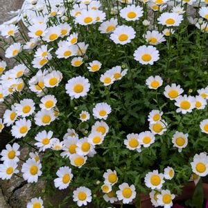 山中温泉の街なかで出会いました✨ 清楚な白い花のノースポールと葉っぱも素敵なヒューケラでした😊