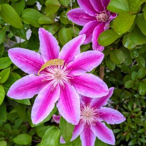 ご近所さんのクレマチスがとても綺麗に咲いていました💕 枯れ葉が付いていたのを知らずでしたが 御愛嬌ということで…💦 白いツツジやバラもあります✨