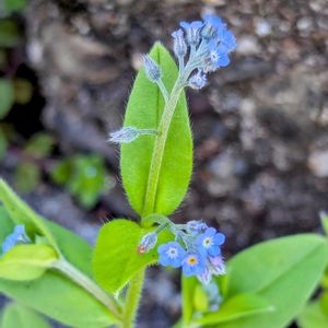 道端で咲いていた小さなブルーのお花 ノハラムラサキかキュウリグサのどちらかだと思うのですが… キュウリグサは葉を揉むとキュウリの匂いがするらしいので試してみれば良かったです…😅