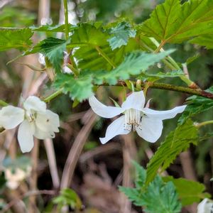 しだれざくらの里へ向かう途中にモミジイチゴの白い花と開花を今かとヤマブキのツボミが並んでいました🌿
