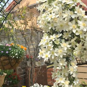 おはようございます😊 これ3月初めにUPしたハンギングです ブラキカム主役にして両脇アリッサムとかすみ草 願わくばシンメトリーに両方モリモリ✨ ニッチェ江上さんぽくなって欲しかった( ˊᵕˋ ;)💦 無理でした😅 予想通りスイアリさんだけ溢れ咲き💭💭💭 でもなんかほんわか💗 ちょっと笑える寄せ植えです😊 今日は晴れそう☀ でも午後は急変で雨?昨日もそうだったし 用心にカッパ持ってね🚲💨