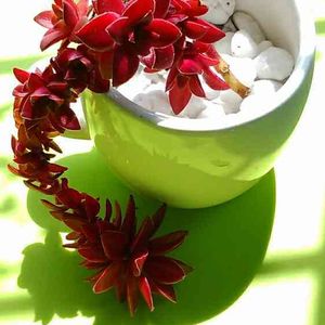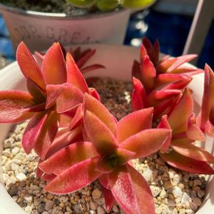 今年一番長く綺麗な紅葉を見せてくれている多肉植物達 夕日を受けてさらに真っ赤になりました もう緑の時の姿を忘れてしまいますね そろそろ戻り始めるのかな❓