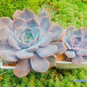 こんばんは😃🌃 今日は雨が降るという予報だったので、自然の水やりをと思い🚿多肉植物を外に出していましたが、結局降りませんでした😅💦 仕方なく夕方水やりをして、多少焦げたり小さくなったものの何とか夏を乗り切ってくれたエケベリアを並べてみました٩(ˊᗜˋ*)و✧*